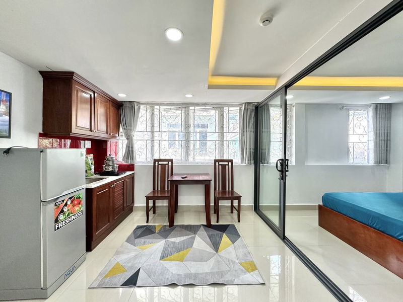 | Giá thuê | 6,8 triệu VND/tháng | 6 – 8 triệu VND/tháng | Giá thuê nằm trong khoảng trung bình đến hơi thấp so với căn hộ dịch vụ cùng loại tại khu vực. |