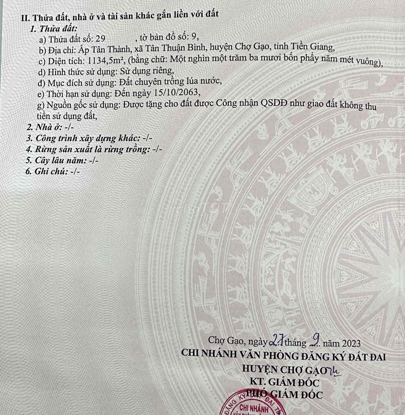 Nhận định về mức giá 400 triệu cho đất nông nghiệp 1134m² tại huyện Chợ Gạo, Tiền Giang