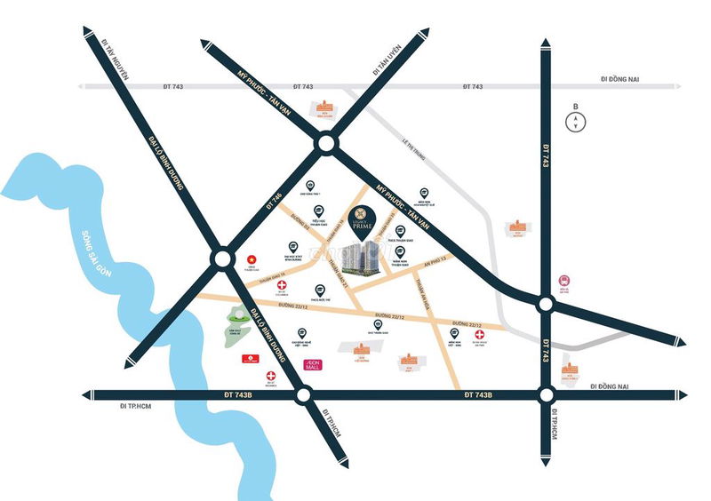 Vị trí Gần Quốc lộ 13, kết nối TP.HCM 15-20 phút, khu yên tĩnh Gần các tuyến đường lớn, giao thông thuận tiện Vùng giáp ranh TP.HCM, giao thông thuận tiện