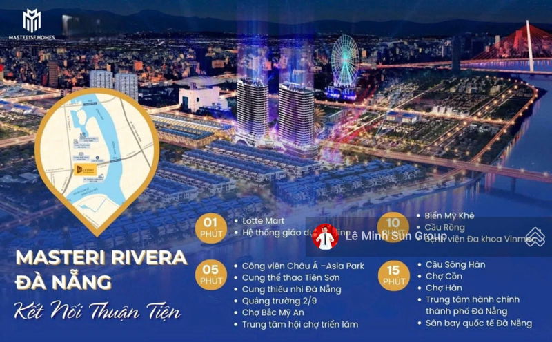 Masteri Rivera Đà Nẵng tọa lạc tại số 50 đường Quy Mỹ, phường Hòa Cường Nam, quận Hải Châu – vị trí trung tâm TP. Đà Nẵng, gần sông Hàn, cầu Rồng, biển Mỹ Khê và sân bay quốc tế chỉ trong vòng 10 phút di chuyển. Đây là khu vực có giá trị bất động sản cao do vị trí thuận tiện và phát triển đô thị mạnh mẽ.