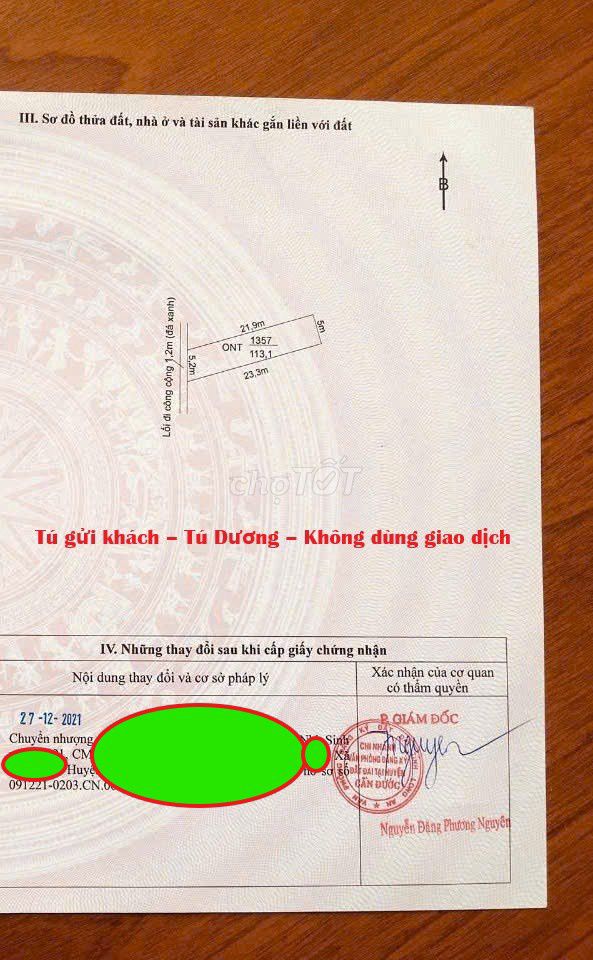 | Diện tích | 113 m² (5 x 23 m) | Không áp dụng | Diện tích phù hợp để xây dựng nhà ở hoặc đầu tư kinh doanh nhỏ |