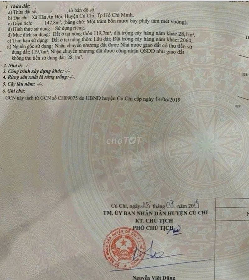 Kẹt tiền nên bán lô đất gần cầu vuợt Củ Chi