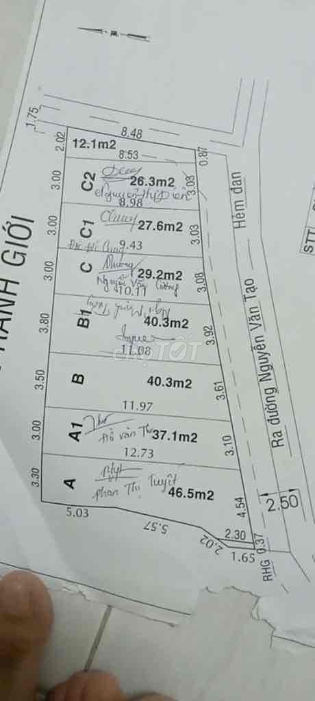 | Long Thới, Nhà Bè | Đất thổ cư | 38,5 | 33,51 | 1,29 (theo tin đăng) | Lô góc, 2 mặt tiền, đường hẻm ba gác |