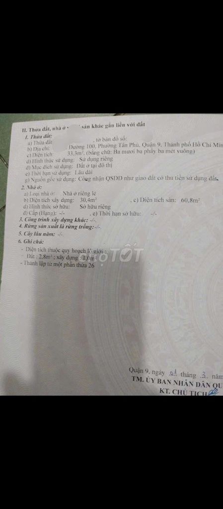 | Căn được chào bán | 33,3 | 2,222 | 66,73 | Phường Tân Phú, Thủ Đức | Hẻm xe hơi cách 2 căn, có dòng tiền thuê |