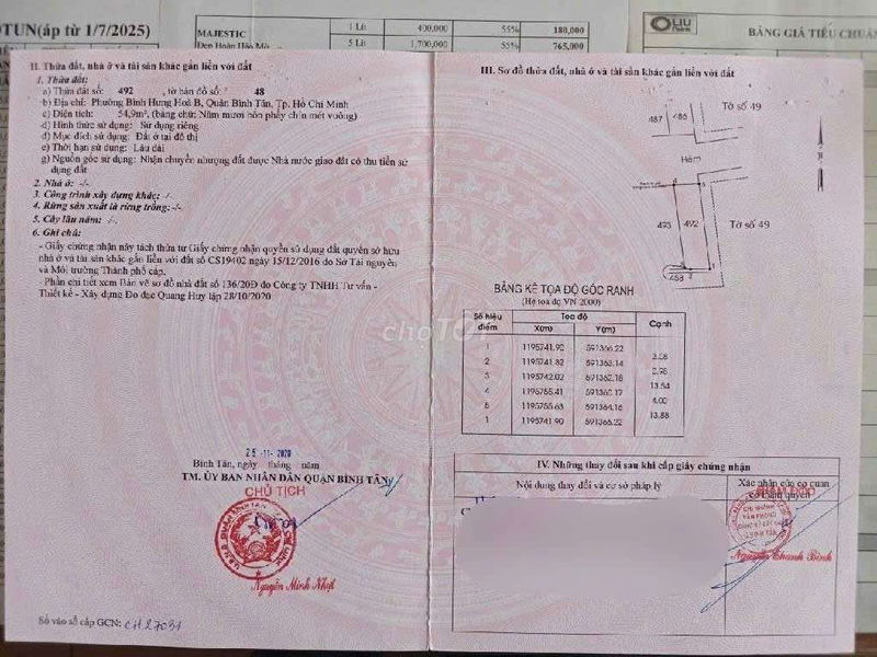 345 đường Bình Thành, Bình Tân 56 75 4,2 Đất thổ cư, sổ hồng riêng, hẻm xe hơi, có vỉa hè 2024