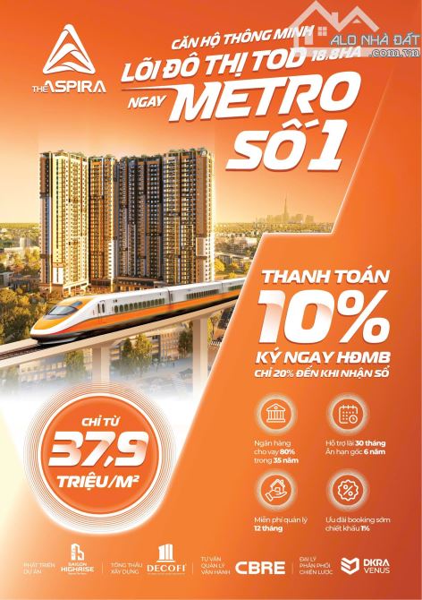 Căn hộ chung cư The Aspira tọa lạc tại đường Nguyễn Thị Minh Khai, phường Tân Đông Hiệp, TP. Dĩ An, Bình Dương, thuộc dự án có pháp lý rõ ràng (sổ hồng/sổ đỏ) và hạ tầng TOD (Transit Oriented Development) kết nối trực tiếp với ga Metro S12 – S13 cách ~500m. Diện tích căn hộ 65 m², giá bán 2,5 tỷ đồng tương đương khoảng 38,5 triệu/m².