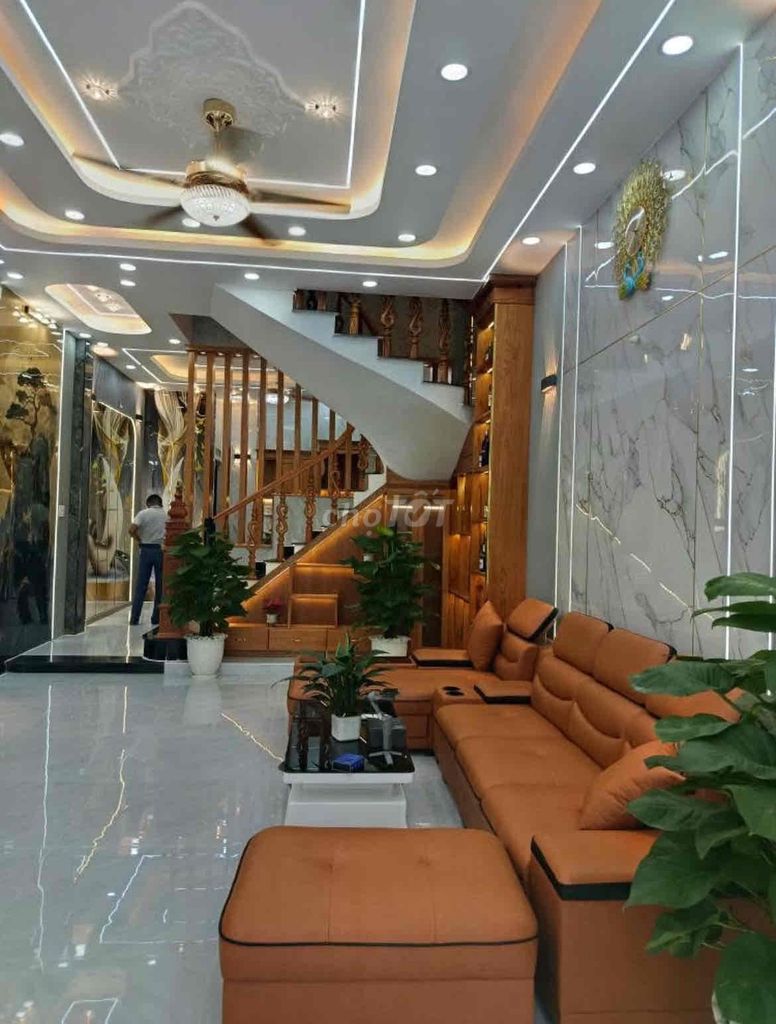 - Diện tích và kết cấu: Nhà 1 trệt 2 lầu, 4 phòng ngủ, 4 phòng vệ sinh, gara 2 ô tô, sân thượng, đầy đủ công năng, phù hợp nhu cầu gia đình đa thế hệ hoặc có không gian làm việc tại nhà.