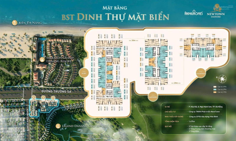 | Newtown Diamond (Trường Sa, Ngũ Hành Sơn) | 82,33 | 2 phòng ngủ | 4,7 | Sở hữu lâu dài, view biển/sông, nội thất demi |
