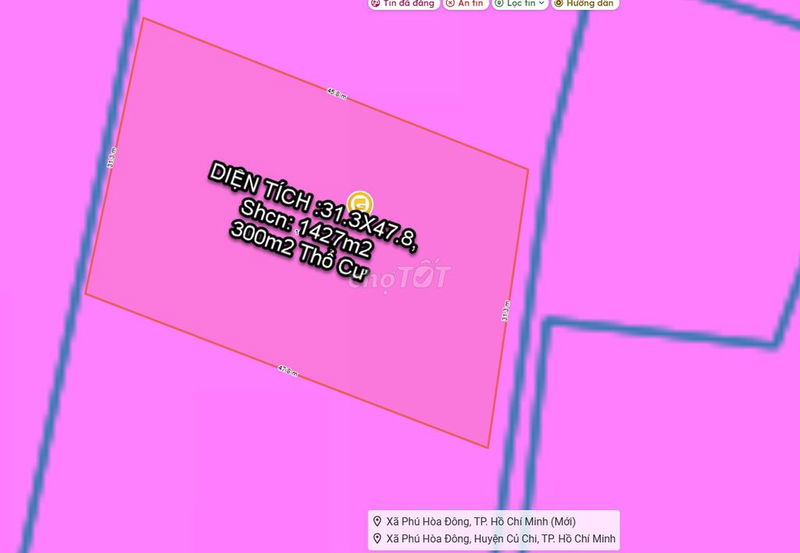 Bất động sản khu vực Phú Hòa Đông, huyện Củ Chi, Tp Hồ Chí Minh, với diện tích 1.427 m², trong đó có 300 m² thổ cư, có giá chào bán 7,135 tỷ đồng (tương đương 5 triệu đồng/m²). So với mức giá tham khảo xung quanh từ 8 triệu/m² trở lên, mức giá 5 triệu/m² là mức giá rất hấp dẫn và có thể coi là hợp lý trong trường hợp cần bán nhanh hoặc đất có một số hạn chế về pháp lý hoặc vị trí cụ thể.