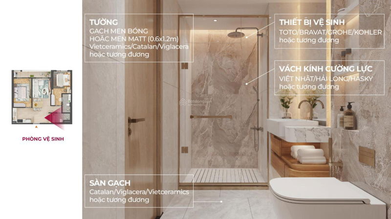 - Vật liệu thương hiệu cao cấp: TOTO, Grohe, Kohler, Hafele, Bosch, Legrand, Panasonic.