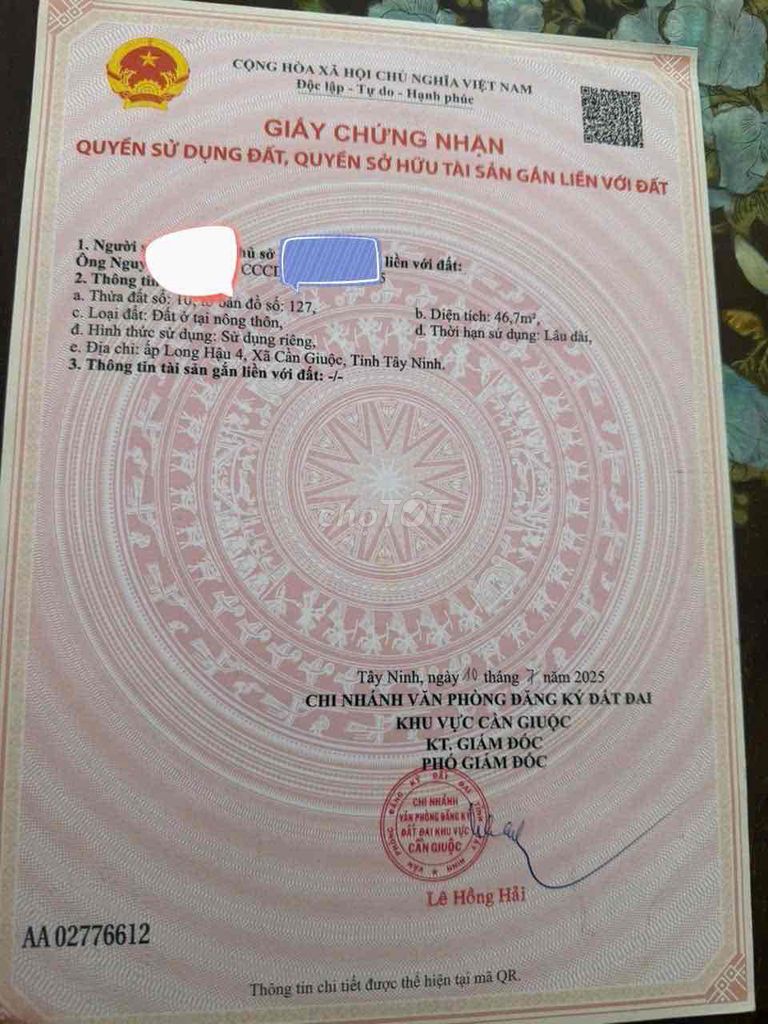 Cần bán gấp lô đất kdc hiện hữu
