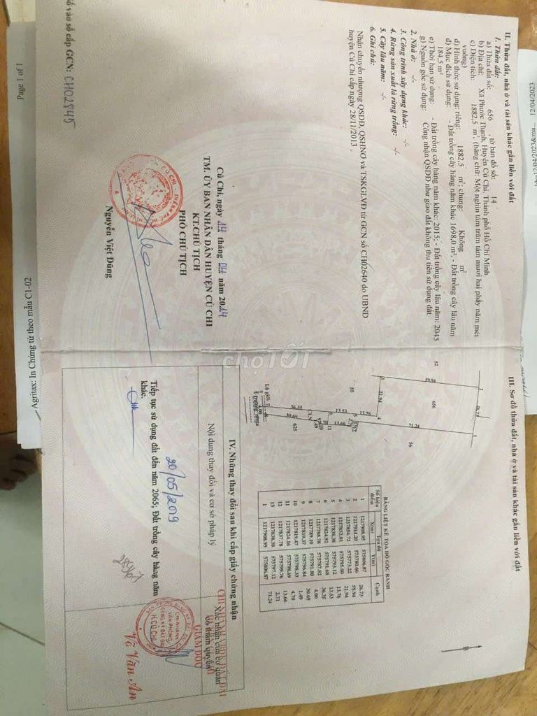 Dựa trên thông tin được cung cấp, lô đất có diện tích 1.880 m², thuộc loại đất nông nghiệp có thổ cư một phần, nằm tại mặt tiền xã Phước Thạnh, huyện Củ Chi, Tp Hồ Chí Minh, với giá chào bán là 3,5 triệu đồng/m².