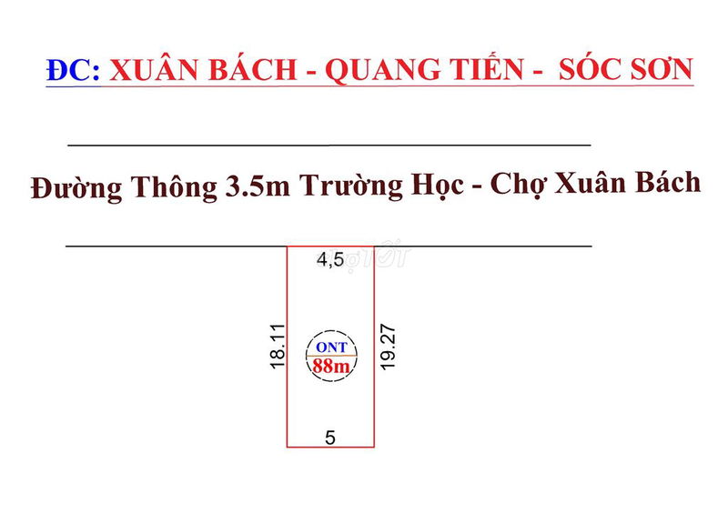Giá chào bán hiện tại: 3,25 tỷ đồng tương đương 36,93 triệu đồng/m². Đây là mức giá khá cao so với mặt bằng đất thổ cư tại huyện Sóc Sơn trong giai đoạn hiện nay, đặc biệt với vị trí thôn Xuân Bách, xã Quang Tiến.