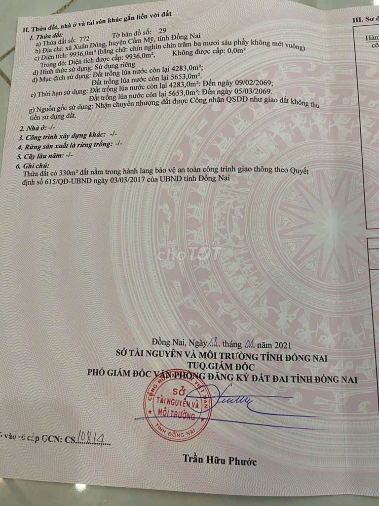 Với diện tích 11.000 m² (1,1 ha), giá 9,5 tỷ đồng tương đương khoảng 863.636 đồng/m² đất nông nghiệp mặt tiền đường nhựa 12m, hướng Đông Bắc, có sổ đỏ rõ ràng. Đất có mặt tiền rộng 100m, chiều dài 110m, thuộc khu vực xã Xuân Đông, huyện Cẩm Mỹ, Đồng Nai – vùng đất giàu tiềm năng phát triển nông nghiệp và có xu hướng tăng giá đất do sự phát triển hạ tầng và kết nối vùng.