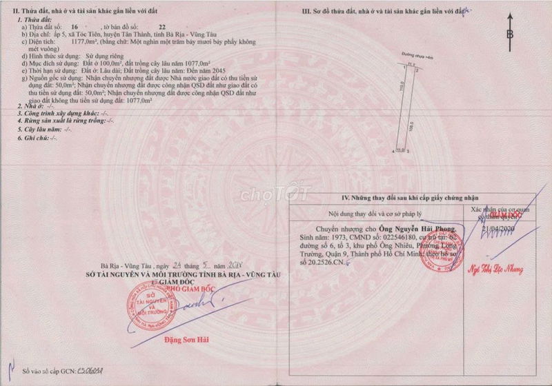 | Xã Tóc Tiên, TX Phú Mỹ | Đất nông nghiệp | 1177 | 6,03 | Giá đề xuất hiện tại |