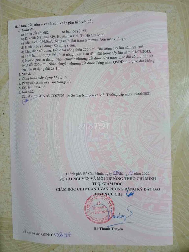 | Trương Thị Kiện, xã Thái Mỹ | 284 | 8,8 | 2,5 | Mặt tiền đường nhựa, đất thổ cư, pháp lý rõ ràng |