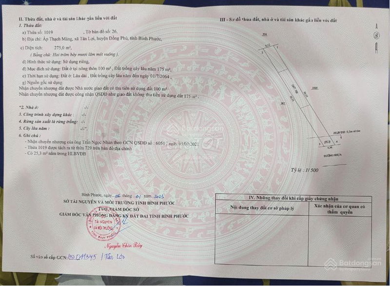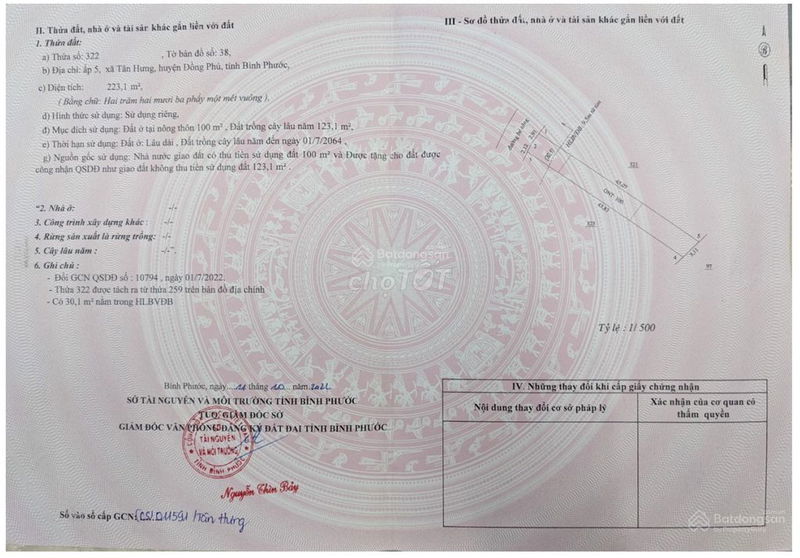 Đất thổ cư tại Xã Tân Lợi, Huyện Đồng Phú, Bình Phước hiện đang được rao bán với diện tích 250 m² (5m x 50m), giá 520 triệu đồng, tương đương 2,08 triệu đồng/m². Đây là mức giá khá phổ biến tại khu vực nông thôn, vùng ven TP Đồng Xoài, Bình Phước. Tuy nhiên, cần lưu ý: