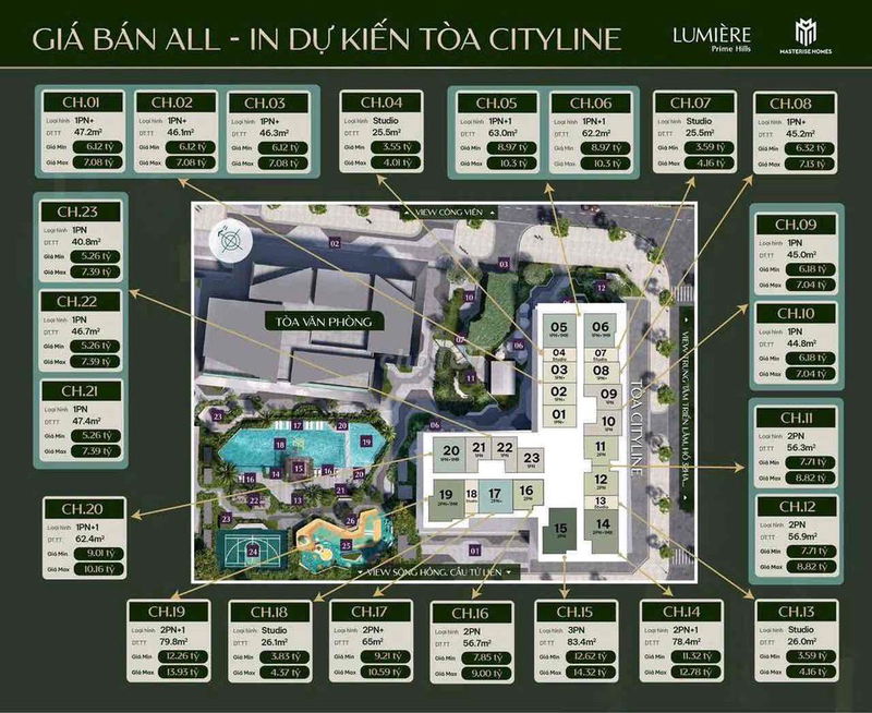 | Lumier Prime Hill | Đông Anh, Hà Nội | 50 | 0.1156 | 5.78 | Chưa bàn giao | View cầu Tứ Liên, gần metro, bao phí sang tên |
