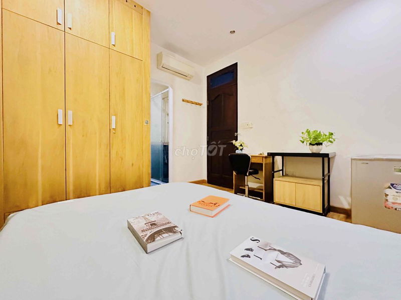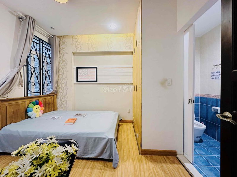 Phòng trọ diện tích 28 m² với nội thất đầy đủ, có cửa sổ, khóa vân tay, thang máy, máy giặt sấy, hầm xe miễn phí và wifi riêng là những điểm cộng lớn, tạo sự tiện nghi và an toàn cho người thuê.