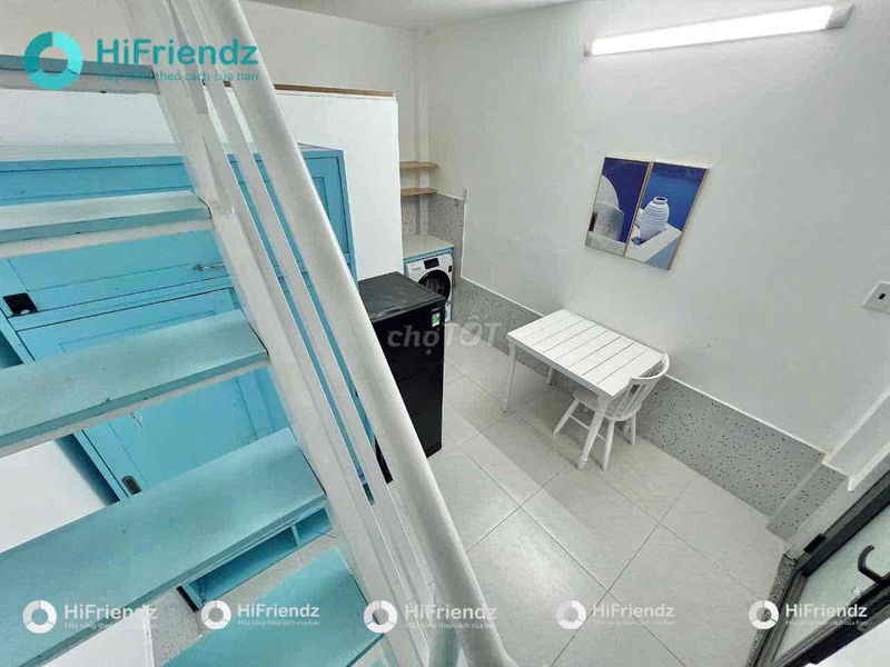 Điểm cộng của căn phòng là có gác lửng, cửa sổ thoáng mát, an ninh tốt với hệ thống camera 24/7, ra vào bằng vân tay, giờ giấc tự do, không chung chủ. Đây là những tiện ích chất lượng, phù hợp với những người có nhu cầu thuê ở lâu dài và ưu tiên sự an toàn, riêng tư.