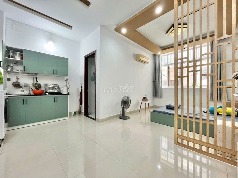 Phòng trọ diện tích 35 m², trang bị nội thất đầy đủ, có cửa sổ lớn thoáng, vách ngăn tách biệt phòng ngủ, nằm tại vị trí mặt tiền đường Phạm Hùng nối dài, Quận 8, với giá thuê 5,5 triệu đồng/tháng được quảng cáo là “ưu đãi cuối năm”.