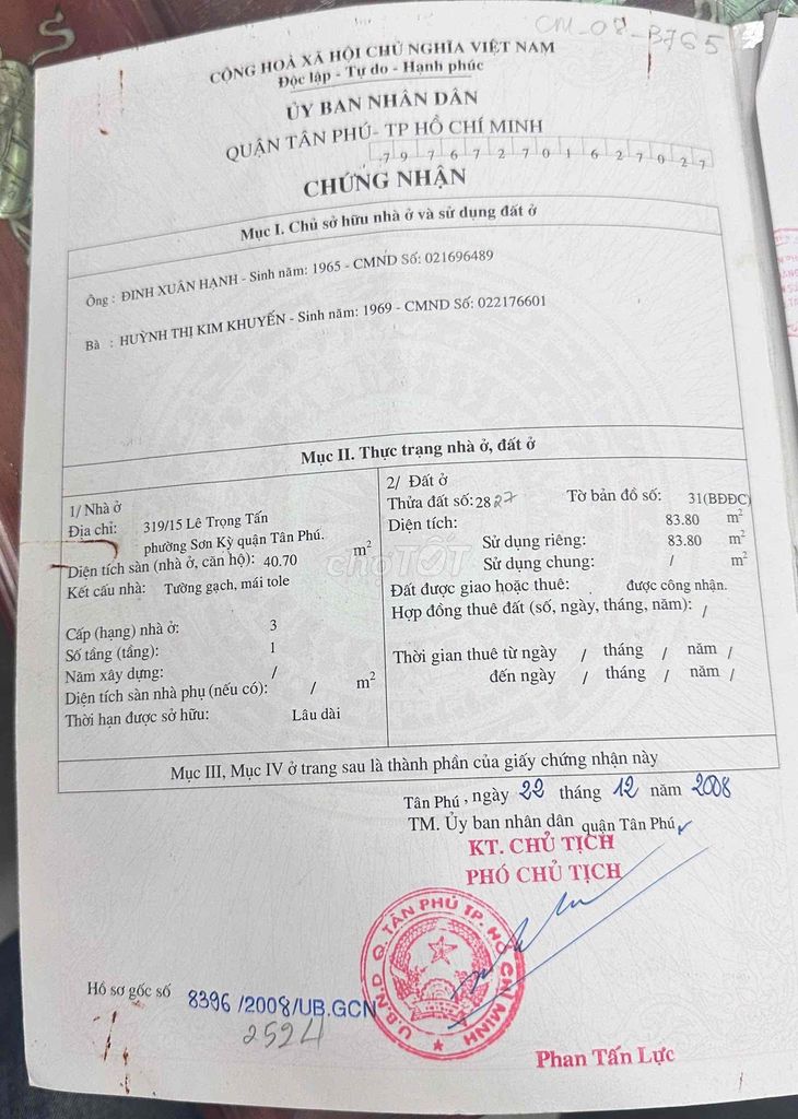 | Lê Trọng Tấn, Tân Phú (BĐS đang xét) | Nhà cấp 4, hẻm xe hơi | 84 | 6,45 | 76,79 | Gần mặt tiền, gần Aeon Mall, chợ, trường học, hẻm xe hơi |