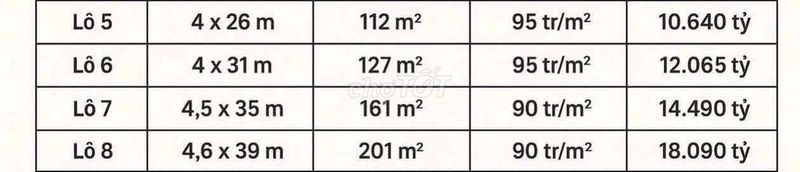 | Giá/m² | 92 triệu | 75 triệu | 100 triệu |