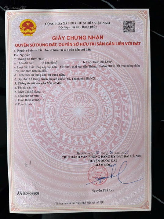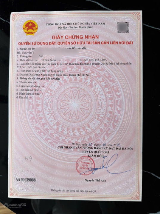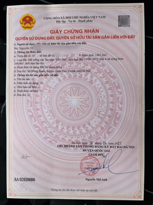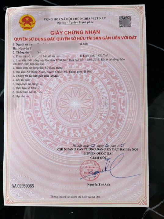 | Quốc Oai – Đường Đại lộ Thăng Long | ~1.200 – 2.000 m² | 20 – 35 | Giá tham khảo, sát khu vực Metro và hạ tầng mới |