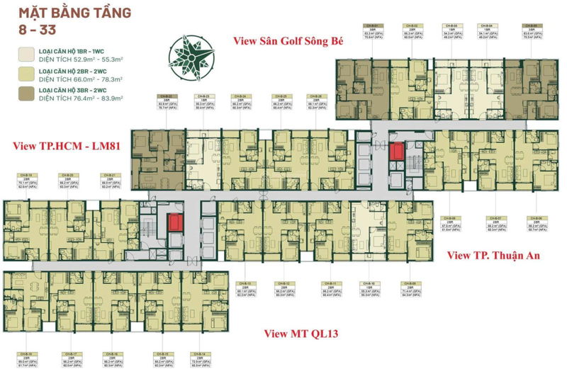 | Charm City (Giai đoạn mở bán) | 50-55 | 1 PN | 36 – 39 | 1,8 – 2,15 | Chánh Nghĩa, Thủ Dầu Một | Tiện ích tốt, pháp lý rõ ràng | Giá thấp hơn chút so với Happy One Mori |