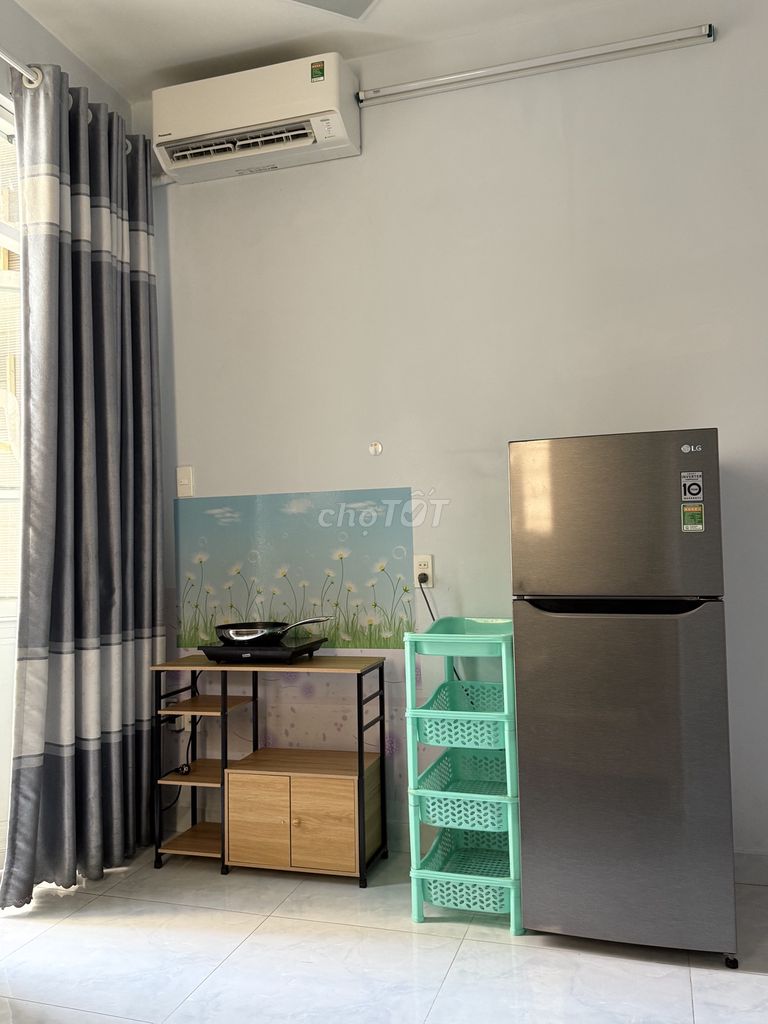 - Phòng có nhiều tiện ích như cửa vân tay, sân phơi, bếp nấu ăn, wifi miễn phí và nước nóng làm tăng giá trị thuê.