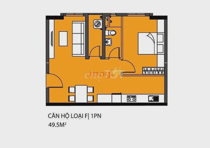 - Diện tích căn hộ không quá lớn, chỉ 49,5 m².