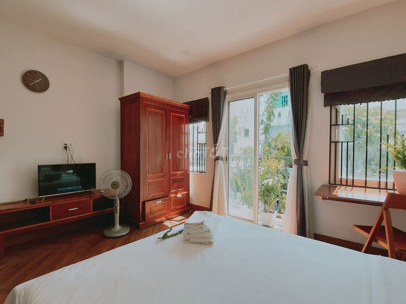 - Nội thất gỗ tự nhiên, không lo ẩm mốc, là điểm khác biệt so với nhiều căn hộ dịch vụ dùng nội thất công nghiệp giá rẻ.