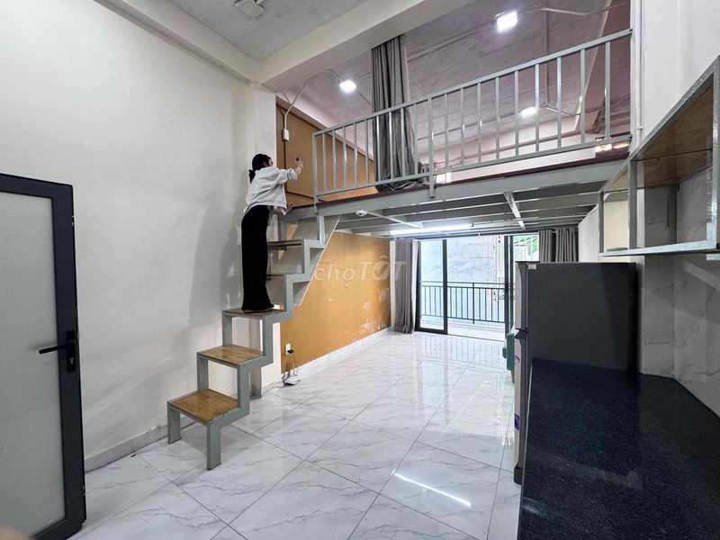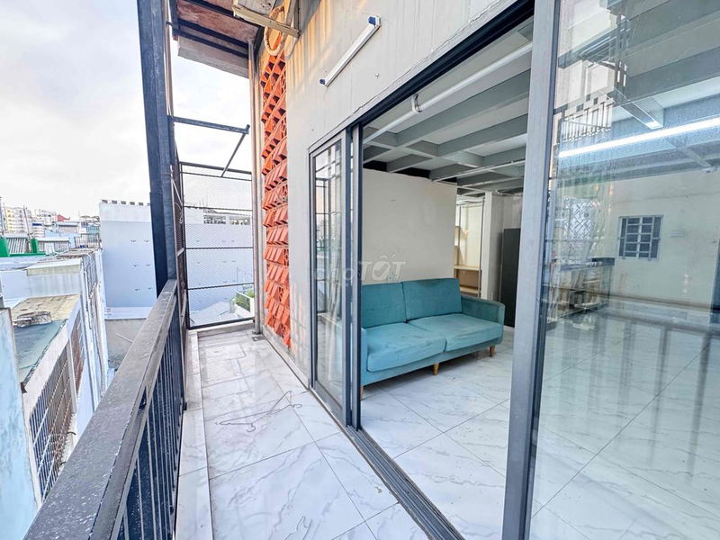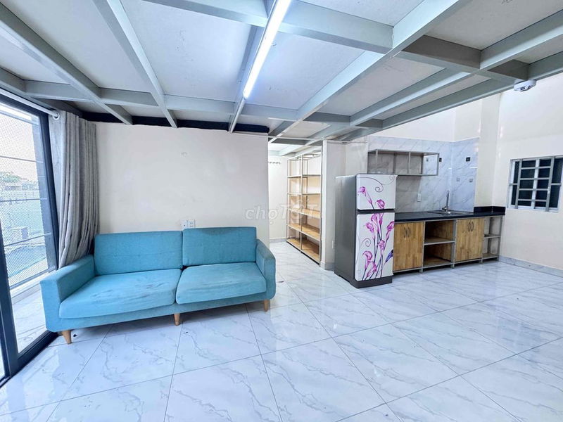 Phòng được trang bị đầy đủ nội thất hiện đại (máy lạnh, máy giặt, tủ lạnh, camera an ninh, PCCC chuẩn), diện tích rộng rãi, có thể ở được 5-6 người, thuận tiện cho nhóm thuê hoặc gia đình nhỏ. Vị trí gần các tiện ích như chợ, trường học, bệnh viện, trung tâm thương mại (Emart, Vincom Phan Văn Trị) cũng là điểm cộng lớn.