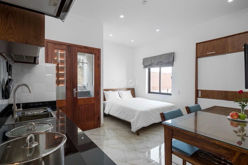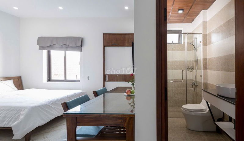 Căn hộ dịch vụ mini diện tích 35 m², đầy đủ nội thất, 1 phòng ngủ, 1 phòng vệ sinh, có sổ hồng riêng, tọa lạc tại khu vực yên tĩnh, gần cầu Rồng và chợ Hà Thân, Quận Sơn Trà, Đà Nẵng được chào thuê với mức giá 5,9 triệu đồng/tháng.