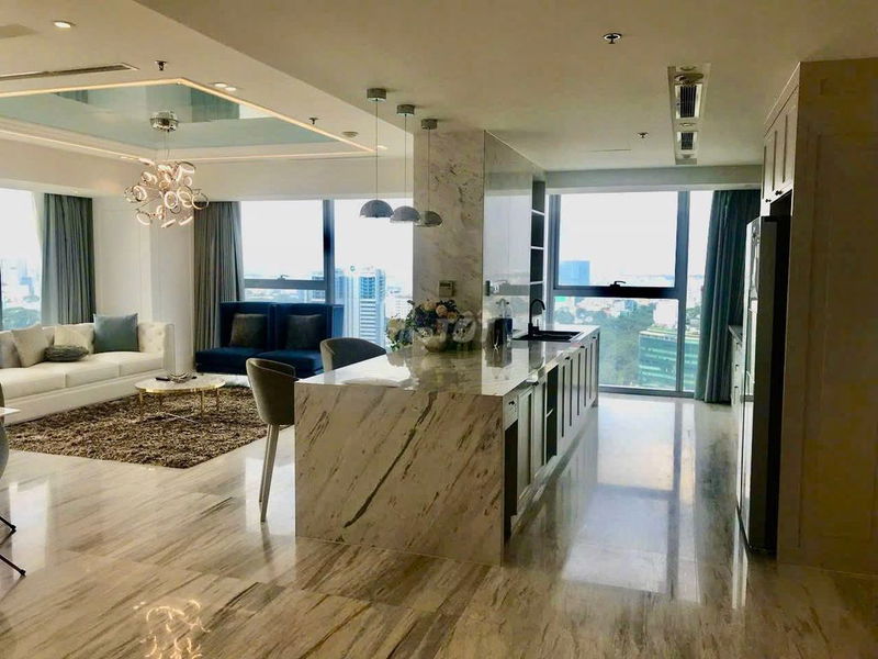Căn hộ Penthouse diện tích 166m², 3 phòng ngủ, 2 phòng vệ sinh, nội thất cao cấp, vị trí đắc địa tại trung tâm Quận 1, Tp Hồ Chí Minh, với tầm nhìn đẹp ra Bitesco, phố đi bộ Nguyễn Huệ và sông Sài Gòn, được chào thuê với giá 110 triệu đồng/tháng.