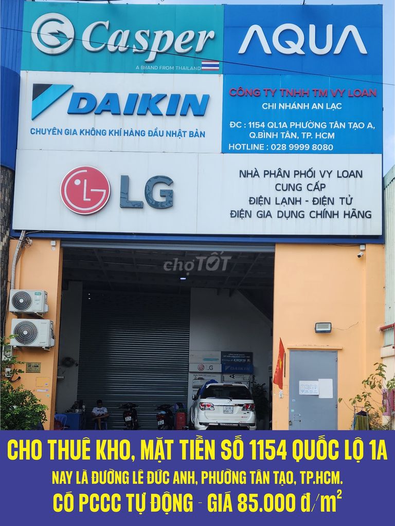 CHO THUÊ KHO 1.000m2 MẶT TIỀN SỐ 1154 QUỐC LỘ 1A (NAY LÀ ĐƯỜNG LÊ ĐỨC ANH, PHƯỜNG TÂN TẠO, TP.HCM).