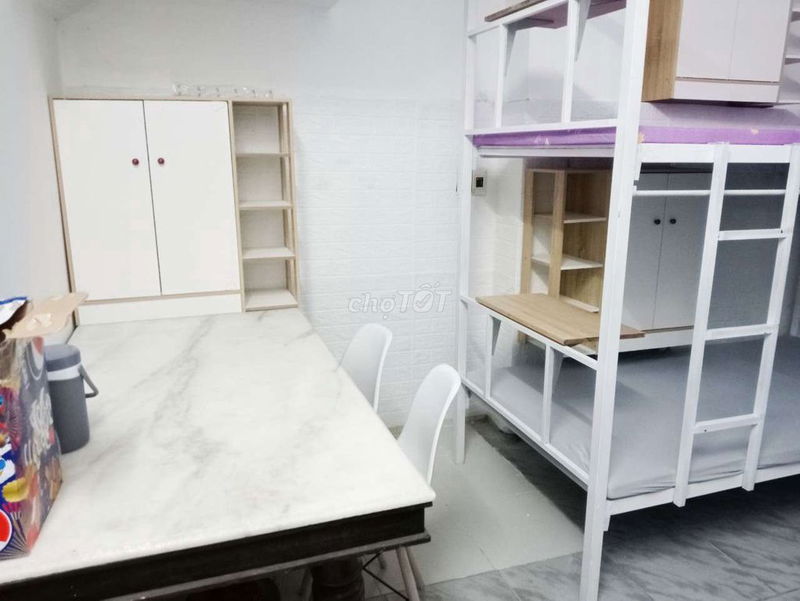 | 159 Hòa Hưng, Q10 | Phòng 4 giường, 1 giường thuê | 40 (phòng chung) | Máy lạnh, tủ cá nhân, kệ bếp, WC riêng, máy giặt, điện 3.5kw miễn phí dịch vụ khác | 1,1 | Vị trí trung tâm, tự do giờ giấc, không chung chủ |