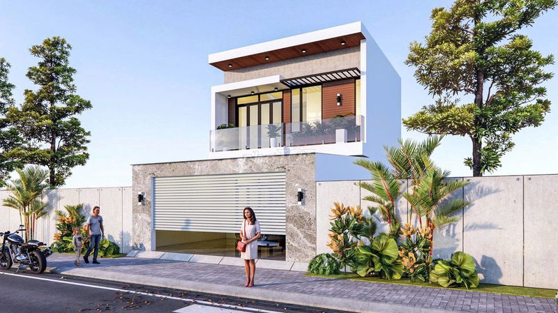 Mặt bằng có diện tích 38.5 m², ngang 7m và sâu 5.5m, thiết kế 2 tầng hiện đại với tầng trệt kinh doanh và tầng trên tiện làm kho hoặc văn phòng. Thiết kế này tạo điều kiện thuận lợi cho kinh doanh đa dạng kết hợp sinh hoạt hoặc lưu trữ hàng hóa.