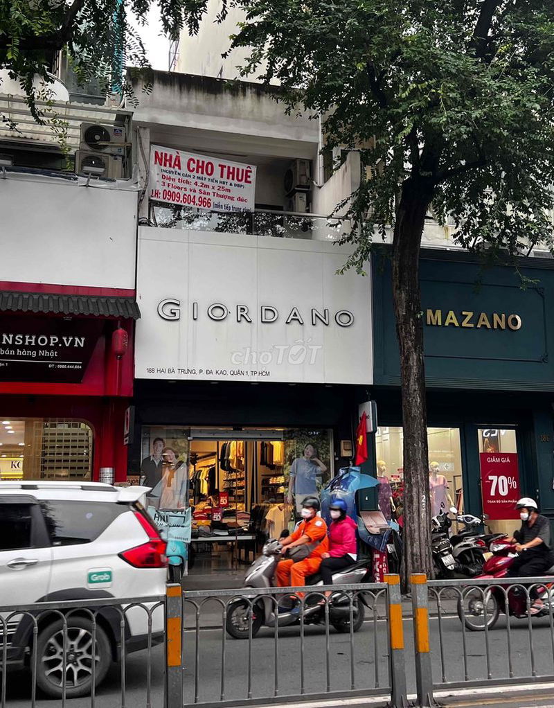 Nhà mặt tiền Số 188 đường Hai Bà Trưng Quận 1- Khu Trung Tâm Thương Mại sầm uất đông đúc thuận tiện kinh doanh mọi ngành nghề, cho thuê lâu dài. -Diện tích mặt bằng 105m2 (dài 25m rộng 4,2m)