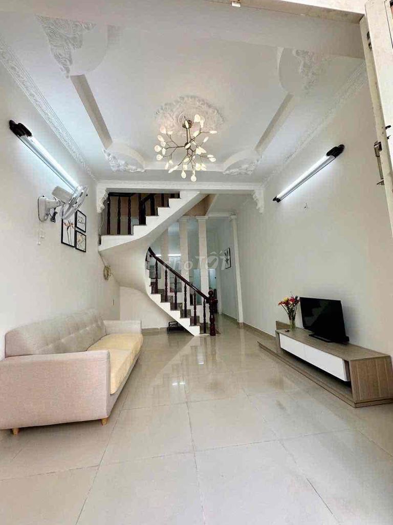 Nhà có sổ hồng hoàn chỉnh, hẻm xe hơi rộng 3,5m, chiều dài 13m, phù hợp cho gia đình nhỏ hoặc thuê lâu dài.