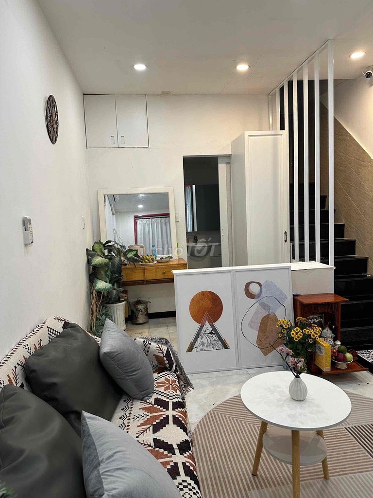 Diện tích đất 35 m², diện tích sử dụng thực tế lên tới 110 m² nhờ kết cấu 4 tầng. Nhà có 3 phòng ngủ và 4 phòng vệ sinh, nội thất cao cấp, thiết kế sang trọng, phù hợp với gia đình hoặc nhóm người thuê cần nhiều không gian sinh hoạt riêng biệt. Nhà gần mặt tiền hẻm, tạo thuận lợi để nhận ánh sáng và thông gió tự nhiên.