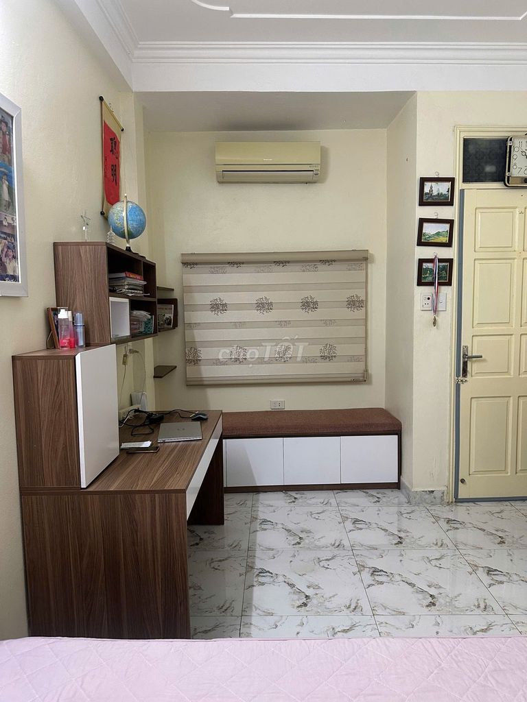 Tầng 2: 1 phòng ngủ 18m2 có tủ quần áo + giường+ 1 bàn học+ 1 tivi có truyền hình cáp+1 tủ đựng đồ nhỏ trên có đệm cạnh cửa sổ + 1 điều hoà+ 1 ban công nhỏ+ 1 nhà vệ sinh khoảng 6m2 (có tủ đựng đồ khăn tắm …+ 1 xí bệt+ 1 phòng tắm kính + 1 tủ đựng đồ dưới chậu rửa mặt)