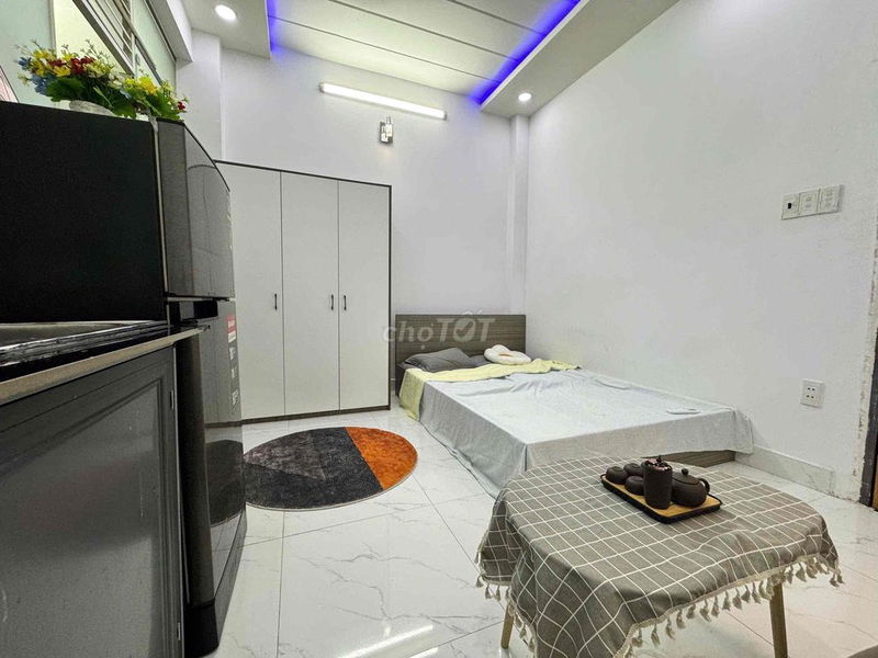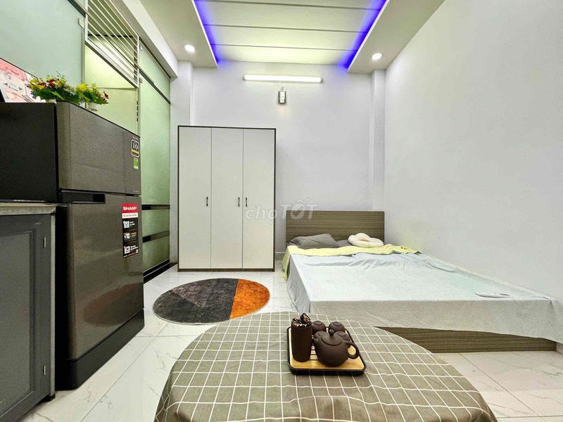- Nội thất full đủ tiện nghi cao cấp (máy lạnh, khóa vân tay, tủ lạnh, giường nệm), tạo sự thoải mái cho người thuê.