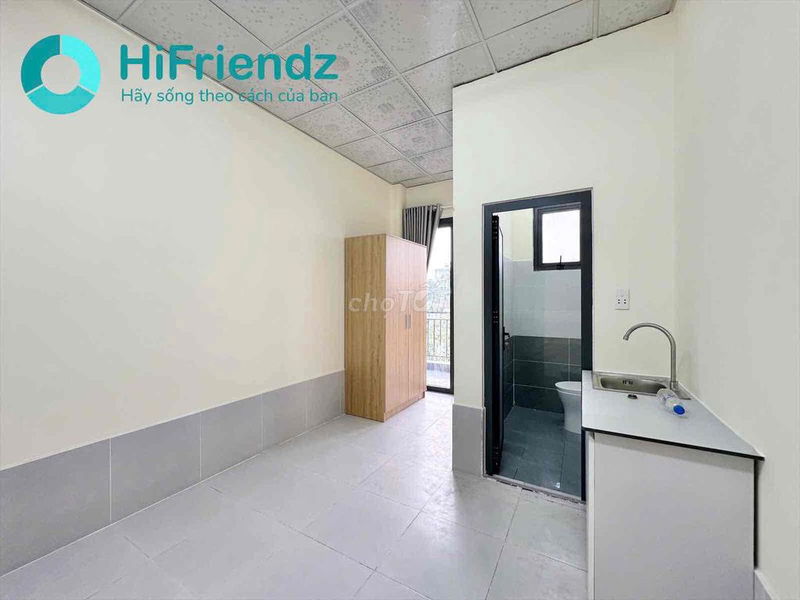 Phòng studio rộng thoáng mát có ban công nội thất đầy đủ