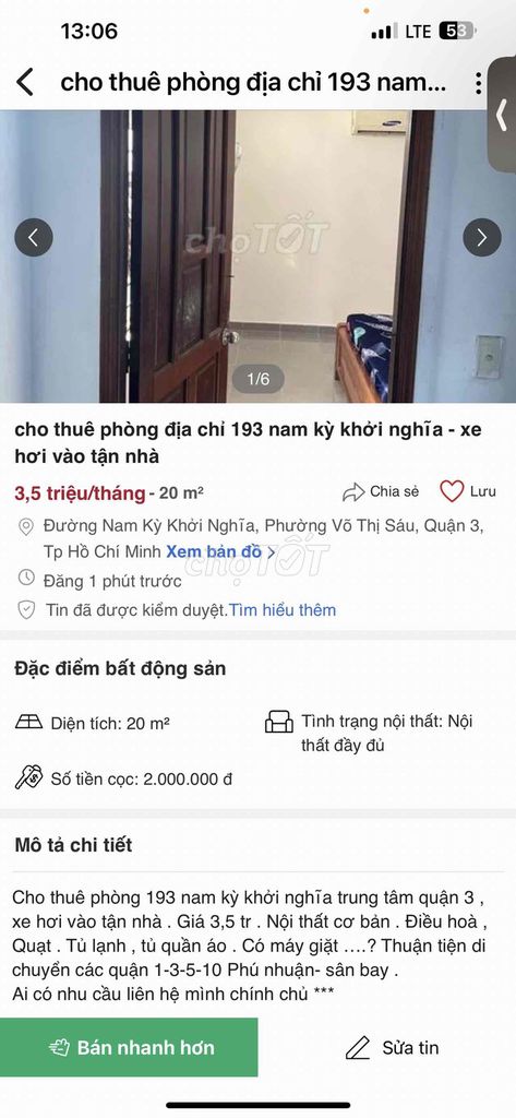 Check giá "Cho thuê phòng nội thất cơ bản đầy đủ . 193 Nam kỳ khởi nghĩa phường v"