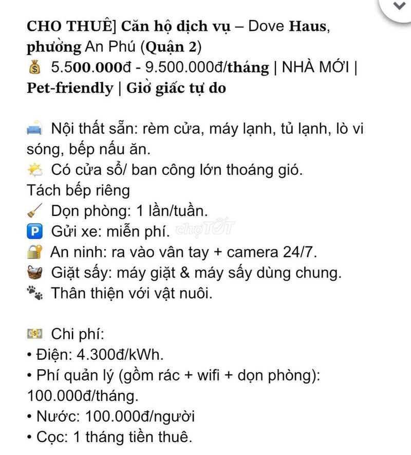 Nhận xét về mức giá thuê phòng trọ tại Dove Haus, An Phú, Thủ Đức