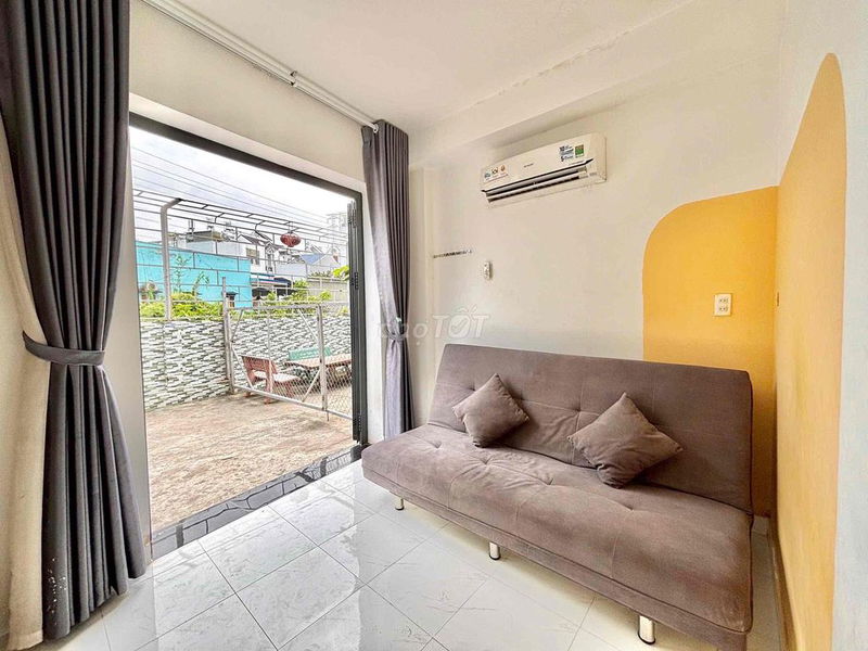 - Phòng có cửa sổ thoáng sáng, giúp không gian không bị bí bách, tạo cảm giác dễ chịu.