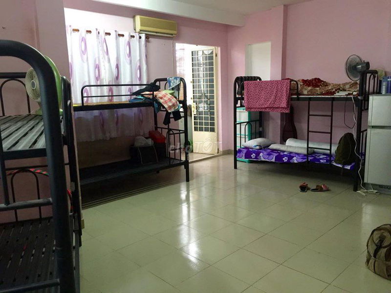 Tầng 1: Diện tích: 60m2 ở 6 người, giường tầng (còn 03 chỗ), giá: 700.000đ/người/tháng.