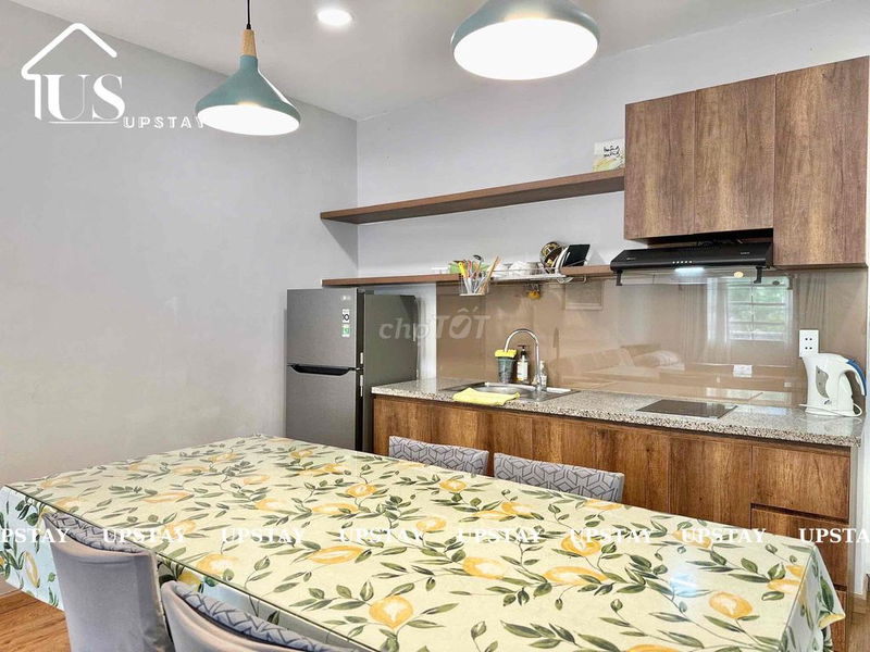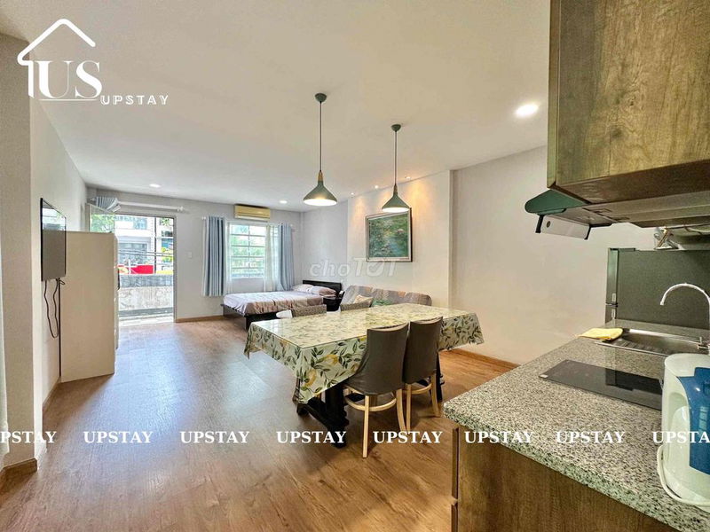 - Nội thất cao cấp: Phòng 50m² với tone gỗ ấm áp, đầy đủ tiện nghi, không gian chung sạch sẽ, có bàn uống trà tiếp khách.