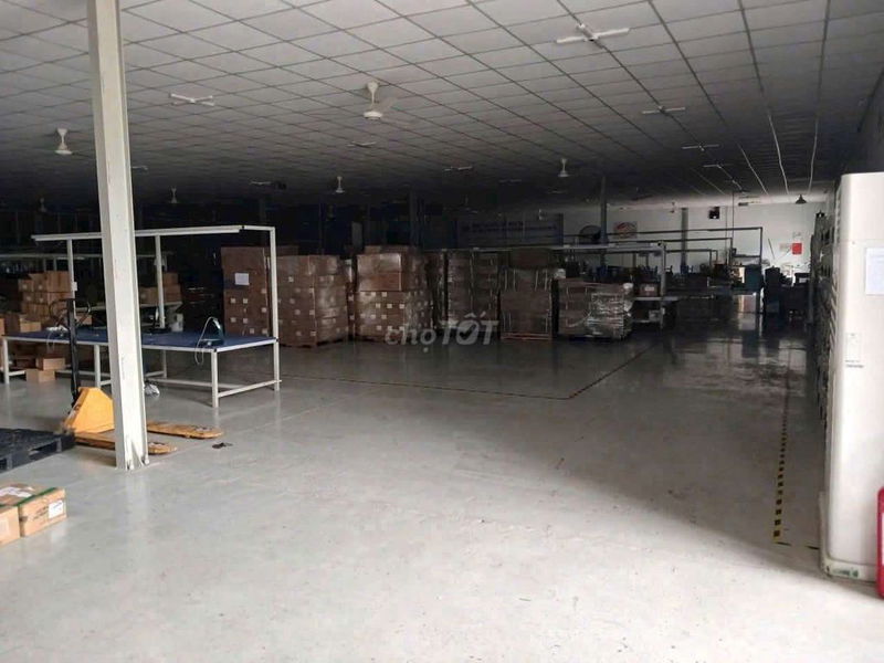 - Diện tích lớn 1700 m² với văn phòng đi kèm, trần la phông chống nóng, nền epoxy sạch sẽ, phù hợp làm xưởng hoặc kho vận.